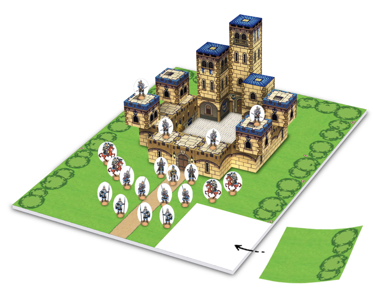 ¿Quieres darle más emoción a tus historias? Pon tableros en tus castillos y haz tu escenario tan grande como quieras. Puedes construirlo pieza a pieza y dar forma a tu propio territorio. Caminos, ríos, bosques, lagos o desiertos, tu decides donde y como ponerlos.