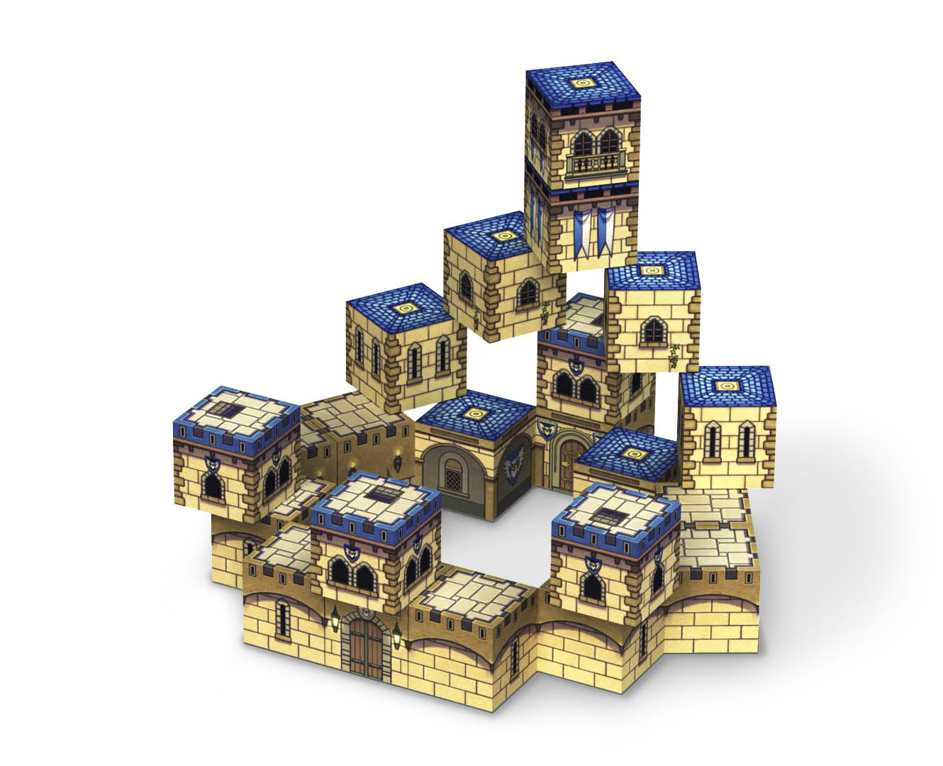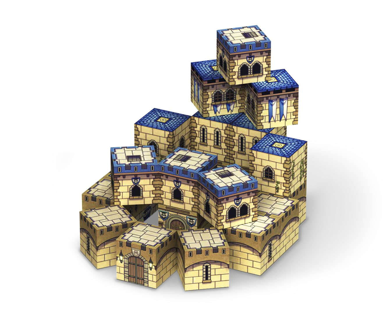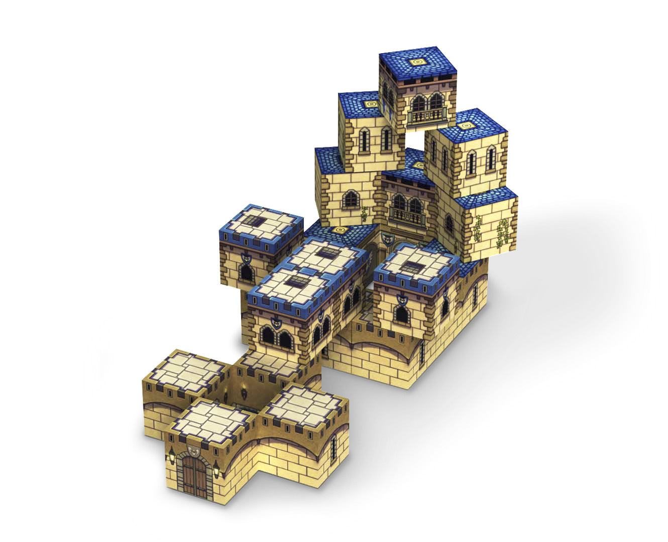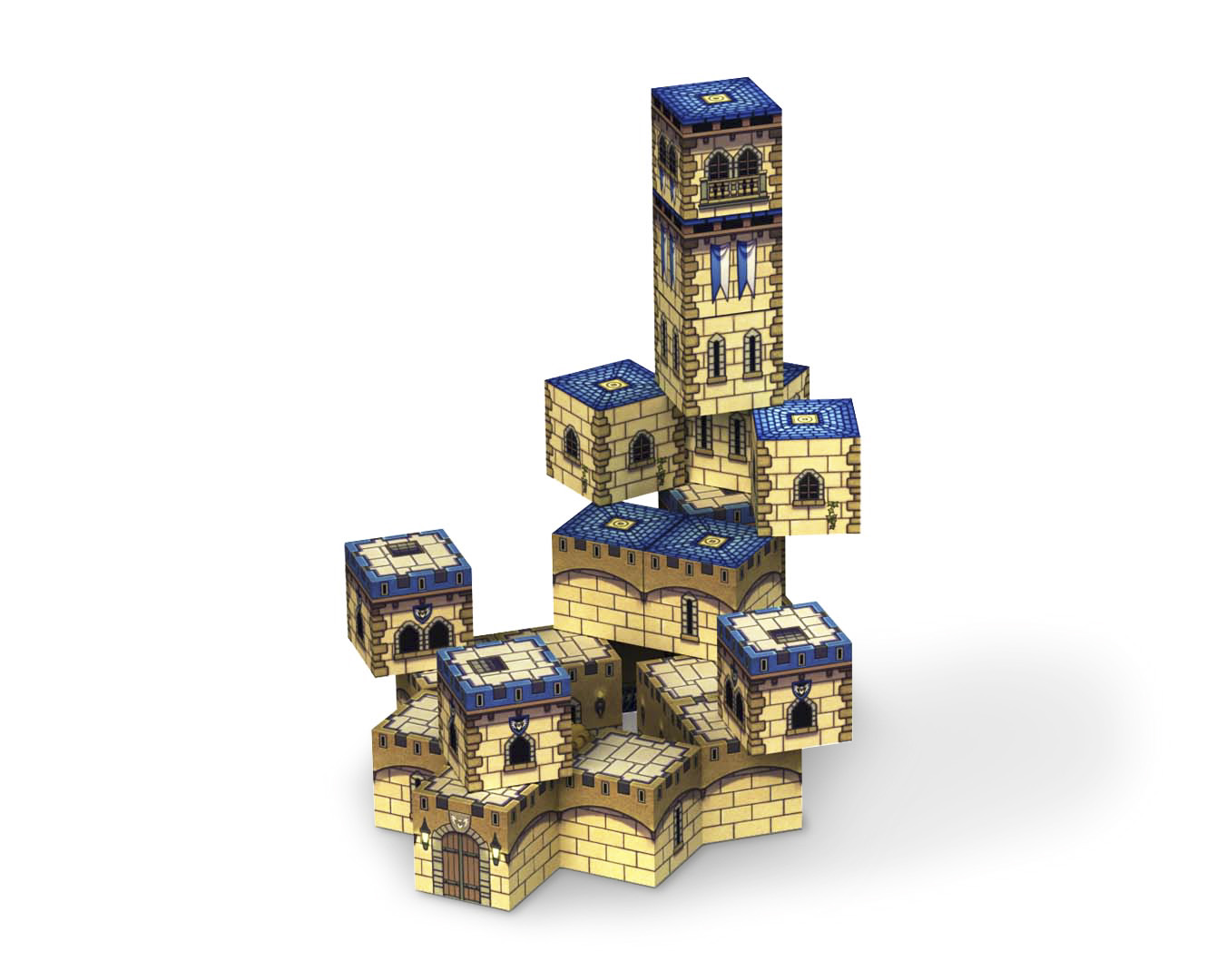 Archivo 1: 22 cubos recortables para imprimir en papel y formar un castillo inicial, junto con las instrucciones de montaje.